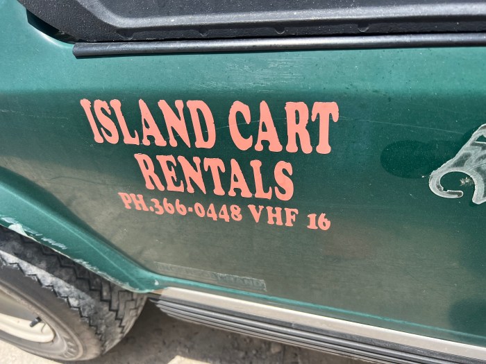 If you’ve never been to Elbow Cay, you should know part of the fun of visiting is riding the Harbor Ferry across the mooring field to get from the marina to the village and golf cart parking. The ferry is free (+gratuity) call the operator as you need him. He doesn’t mind staying late if you ask in advance.
