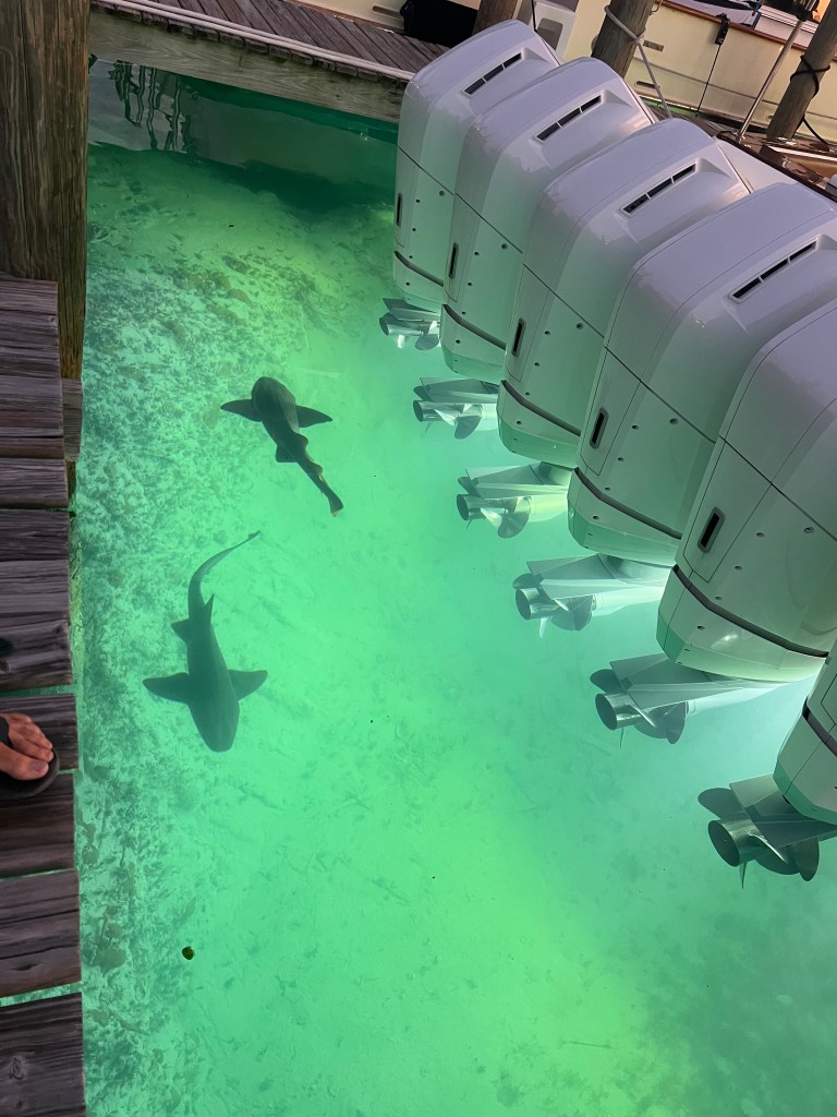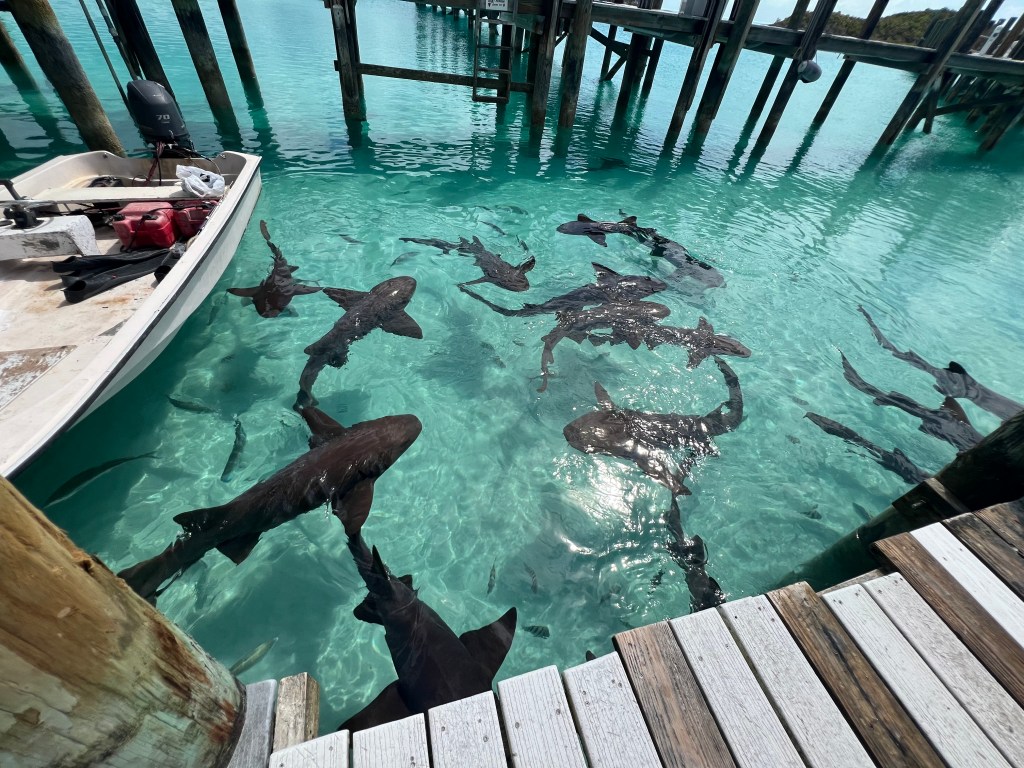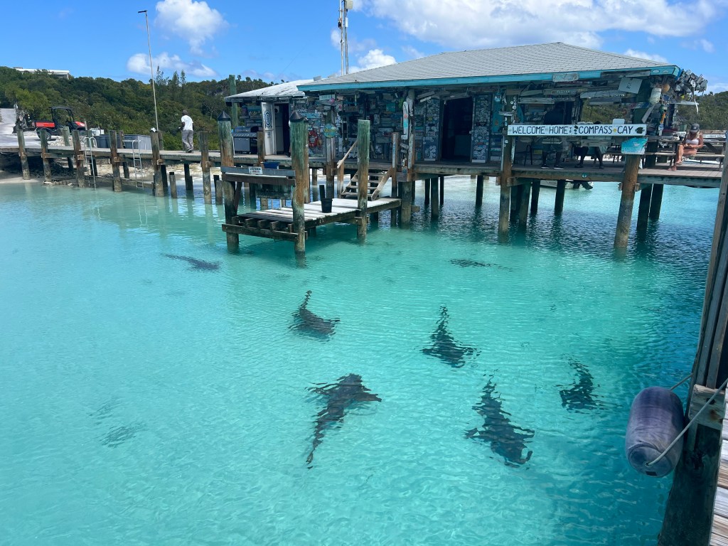 Compass Cay is known for their resident Nurse sharks who love to hang out on the fish cleaning docks, and will allow a pat from any tourist (or crew) willing to swim with them.