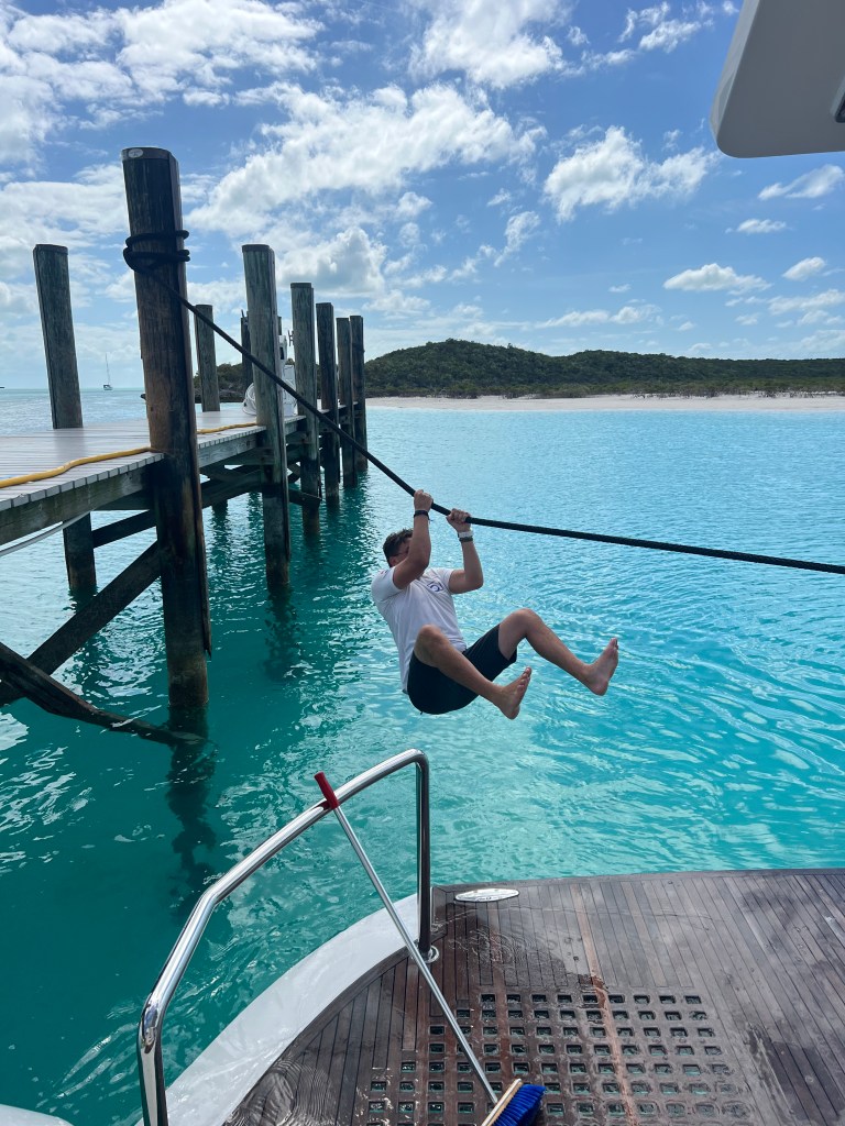 We arrive to Highbourne with plenty of the afternoon remaining to explore a bit by land and become acquainted with the local flora and fauna. The “village” of this island simply consists of the marina, dockhouse, bar/restaurant, and rental cottages. Golf carts are available to rent but mostly not needed as the best views can be taken-in right from the marina. Highbourne offers sweeping blues of every shade with leeward (a protected from the wind) side where the resort offers beach bonfires and water swings.