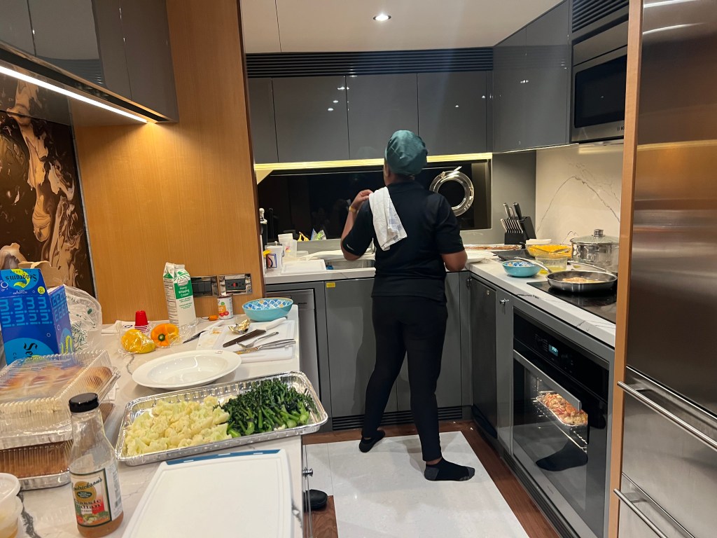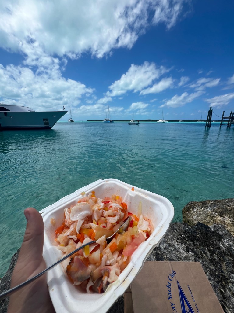 In the evening, we bring onboard a local Bahamian Chef Nunufergie from Blackpoint to prepare dinner onboard for our guests. Nunu prepares local favorites including two of my favorites: Spiny lobsters, and Bahamian Mac N Cheese.