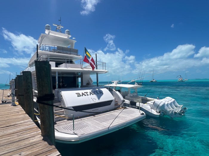 By morning, we watch the sun come up over the island and pull anchor to head in to our slip at the Lyford Cay Yacht Club. Lyford Cay is a private club on the west end of New Providence offering five-star amenities and a well-protected harbor with generous, easy-access slips for larger yachts. We spend the next few days docked at the marina with guests onboard enjoying shoreside activities.