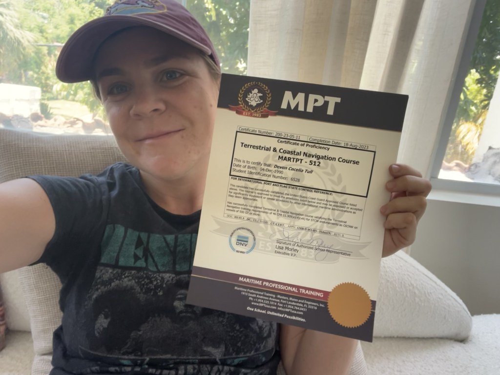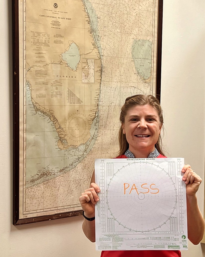 And so what’s a girl to do with her newfound success? Get right back after it, thats what. Yup, January 2024 I dedicate a full season off work to spend my time riding the career training wave as far as it can take me. I take the jump right into my MASTER 3000 GT and decide to hammer down for 5 more months of course training. And the rest is history. I navigate a land desk at MPT through May with my last course being the 3-week long notorious CELESTIAL NAVIGATION / OCEANS SAILING COURSE. Can you spell spherical trigonometry…