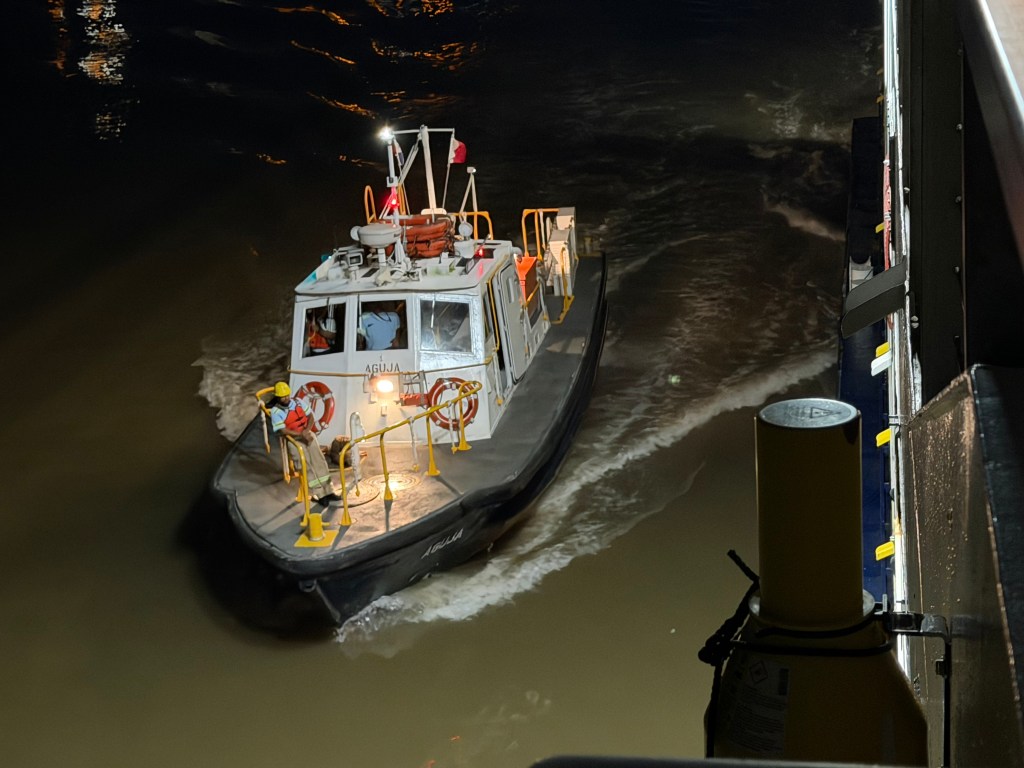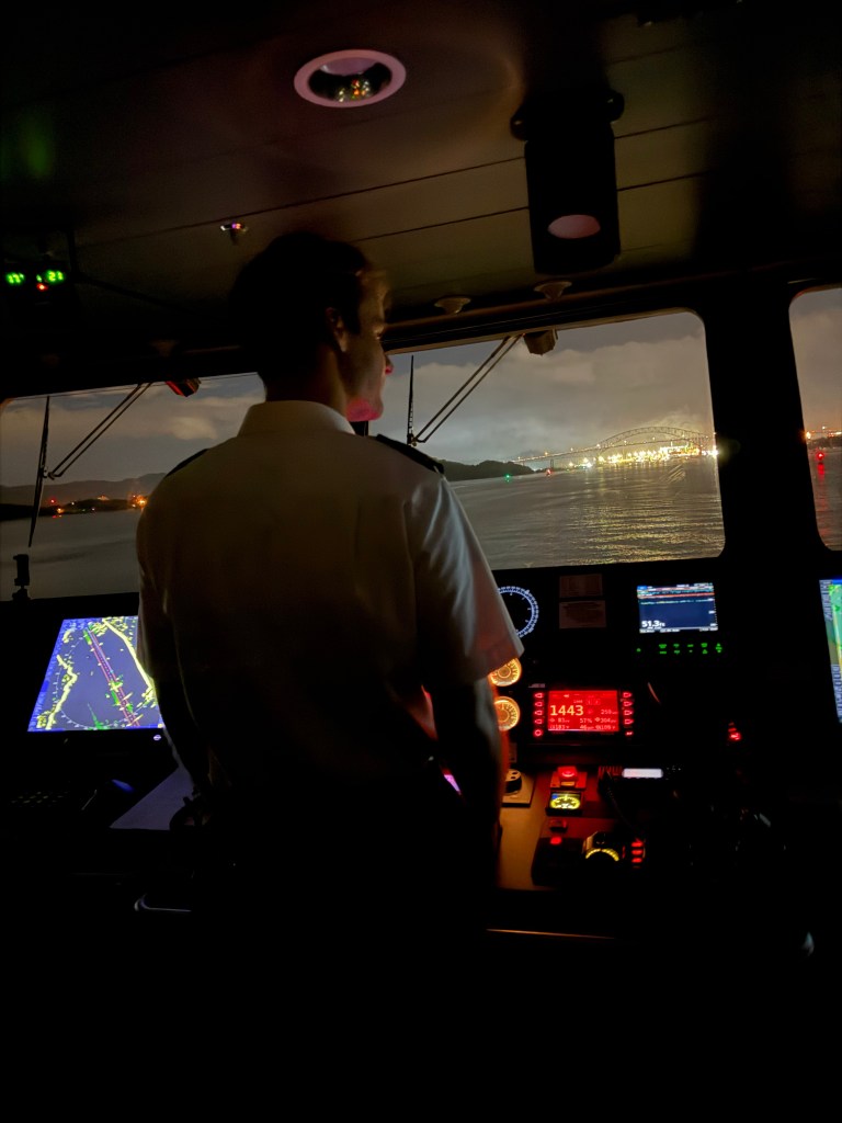 I love when we onboard local Pilots: this process looks like the PILOT BOAT approaches the ship alongside while both are making way (carrying the pilot boat’s dictated course and speed), deckies open the boarding door, pilot boat closes the gap and they leap across, escorted to the bridge and greeted with coffee, sodas, and snacks (hot meal if its chew time). They plug their laptop, special radio, and tracking device into our ship, and we’re off, chatting small talk. All good until we reach close-quarters passing arrangement with other ships, which is decided by Vessel traffic control far enough in advance for everyone to transit safely.