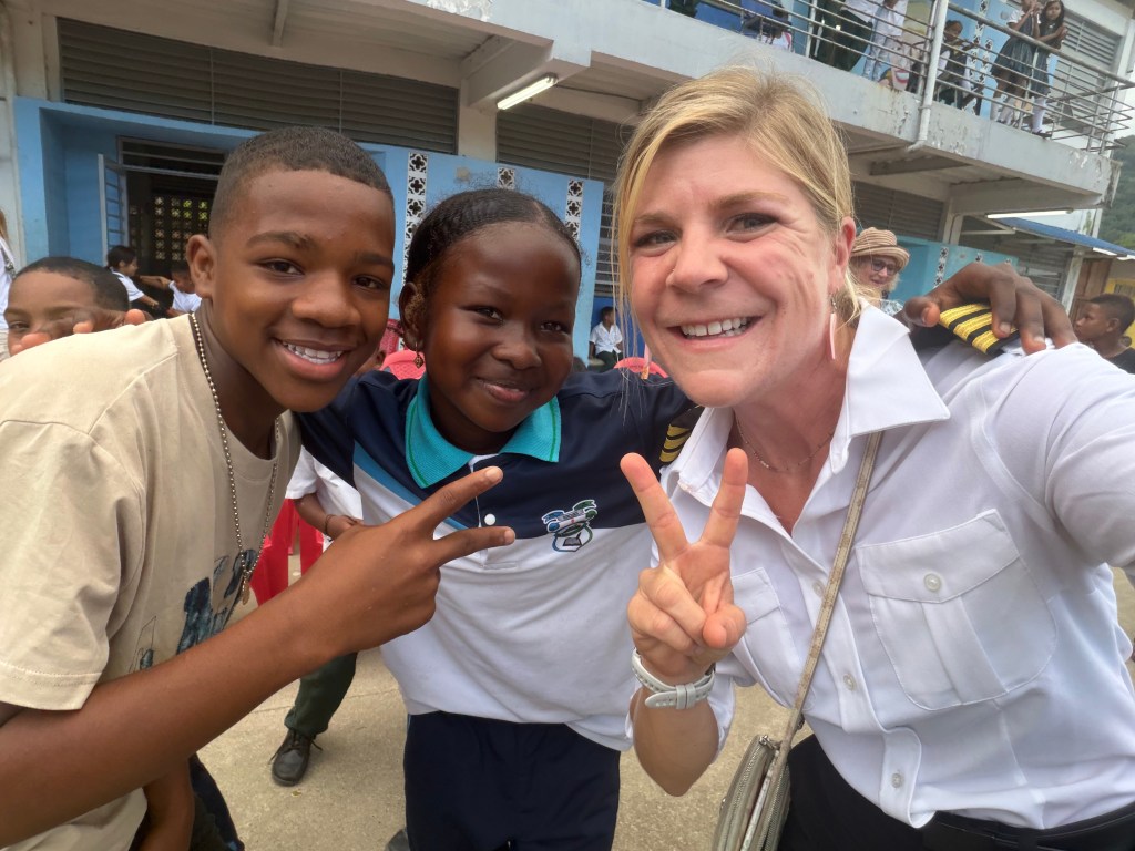 Undoubtedly, the highlight of my time was the opportunity to interact with some of the children in our smallest ports of call. Many of the villages we visited are not connected to the main road system or major airports, and therefore are quite isolated from the influence of outside modernization. In Caporgana our local guide relayed to us the entire school had practiced all year long to perform a cultural dance performance to celebrate our arrival to their village! I attended and these girls were so star-struck to meet -me! a woman in uniform, the GIRL RUNNING THE SHIP, treated as a guest of honor to their open-air outdoor school yard. They called me into the finale of their dance to spin me around and surround me with love and hugs. What a grounding experience- to have 30 little girls (and boys) staring at you like an absolute celebrity and simply wanting to touch your face and your hair and jump into your lap because for them, you represent “something else” a dream that is so foreign and exciting, a foreign visitor that might excite one’s imagination of the endless possibilities of life if you GO FOR IT. Meeting these girls is something I will remember for all my life.