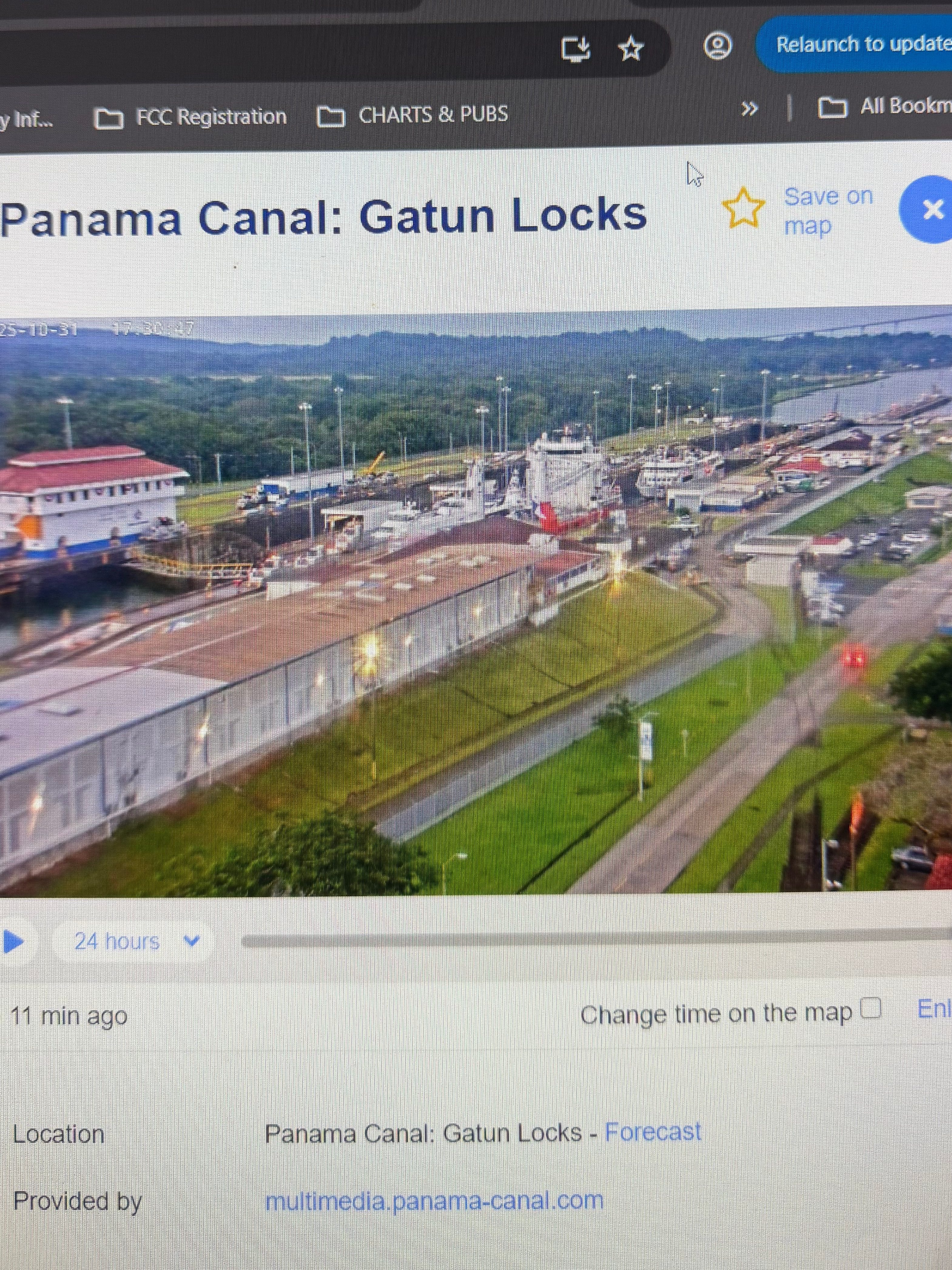 As one might imagine, approaches to the Canal are highly regulated. A typical day will consist of “standing by” in the outside anchorage, awaiting both a pilot-boarding-time-assignment and a canal inspector. This waiting game is regardless of having an appointment on the schedule or not. Furthermore, we’ll be assigned a time slot but still wait around for hours for to the pilot to show. Canal inspectors come aboard with an extensive check list ranging from testing steering to Windshield wipers, to bilge pumps, to compass deviation cards.